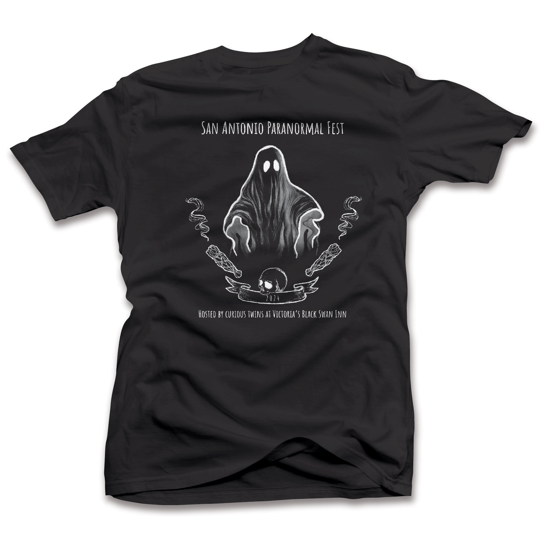 Commemorate your paranormal journey with this exclusive, limited-edition T-shirt created just for the 2024 San Antonio Paranormal Fest. This design captures the dark, mystical energy of the event hosted by Curious Twins at Victoria's Black Swan Inn.